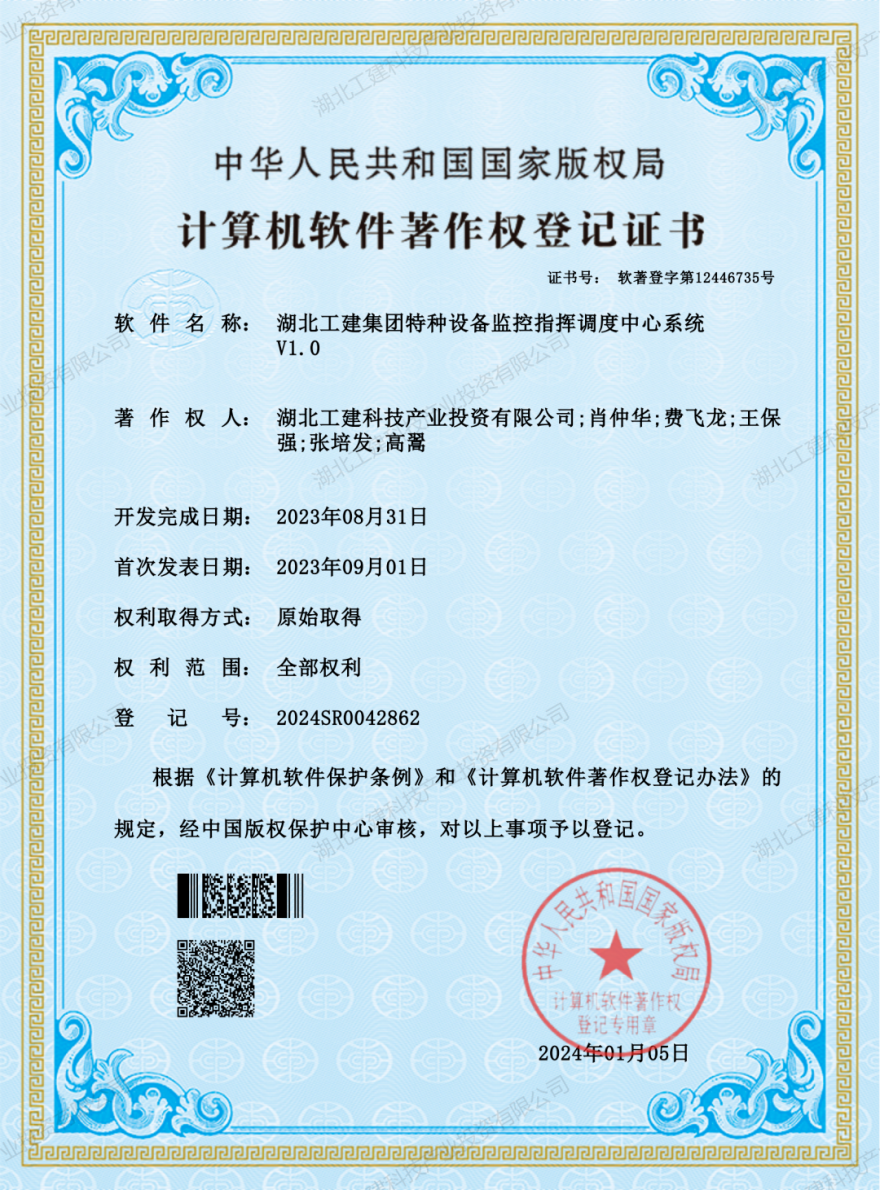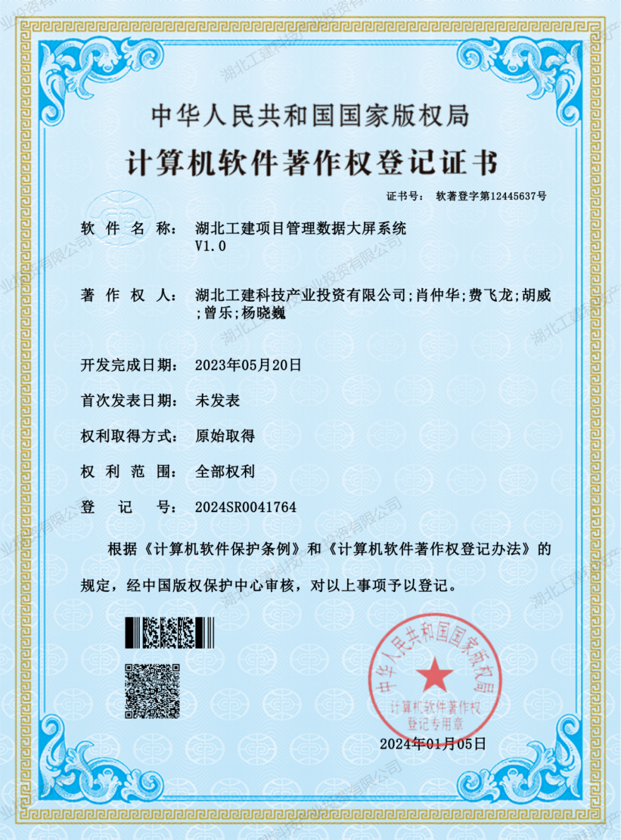 近日,从中国版权保护中心官网获悉,由联投湖北工建科技公司自主研发的6项软件系统,顺利通过中国版权保护中心的严格审查,正式获得了由国家版权局颁发的软件著作权登记证书。