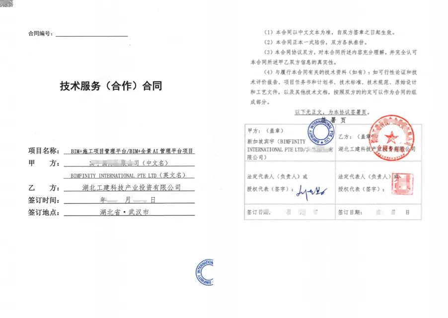 联投・湖北云天建设科技股份有限公司(原湖北工建科技产业投资有限公司,以下简称“建设科技”)于近期成功完成首个海外技术服务项目输出,与新加坡宾宇国际(BIMFINITY INTERNATIONAL PTE LTD)达成建筑信息模型技术(BIM)与施工管理系统融合应用的战略合作,并顺利签订首笔海外技术服务项目合同。