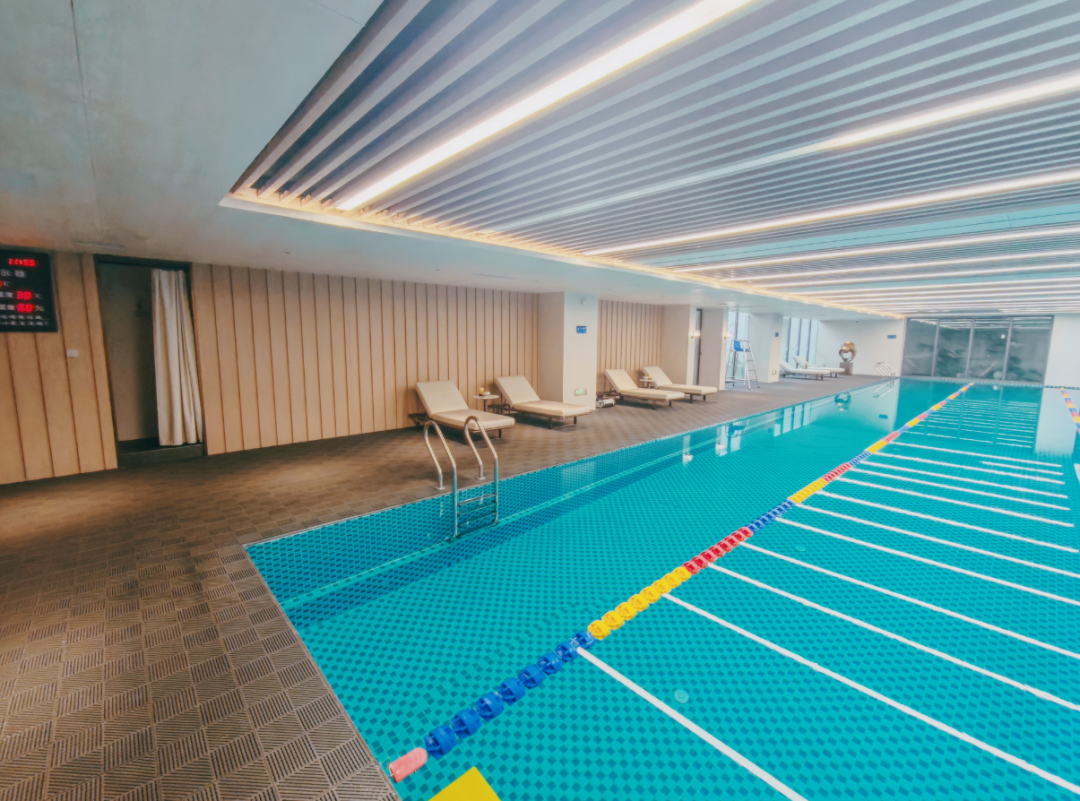 会所一层打造为“活力运动空间”,配备约150㎡的专业健身房,提供瑜伽课程与个性化健身指导,满足居民日常锻炼与轻运动需求;二层定位为“人文共享空间”,设有自主阅读区与休闲办公区,为居民提供静谧的学习工作环境,同时支持读书会、手作课堂等社群活动的开展;负一层则规划为养生调理区,配备面积约390㎡的室内恒温泳池室、中医理疗室与养生SPA,为居民提供全方位的理疗服务,实现从外在放松到内在调养的全维度关怀。