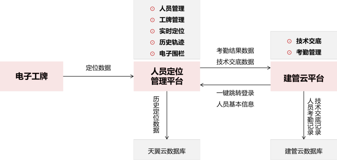 平台接入湖北联投建管云,通过“北斗定位+双平台协同(人员定位管理平台+建管云平台)”的模式落地,构建“终端采集-平台处理-多端协同”全流程体系,实现考勤自动化、定位精准化、交底数字化、管理可视化。
