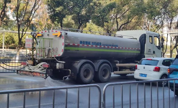 为以最好的城市面貌迎接全国赛友,项目团队提前开展赛道沿线综合整治,对杭州东路等核心路段的行道树进行系统性修剪与涂白,优化视野并消除隐患;对人民广场、磁湖路等重点区域,每日投入150余人及17车次专业车辆,实施“机械清扫、高压冲洗、人工精洗”组合式深度清洁,确保路见本色;同时全面排查并维护沿线12处公交站牌和38处果皮箱,更换破损果皮箱12处,保障设施完好、与赛事环境相协调。