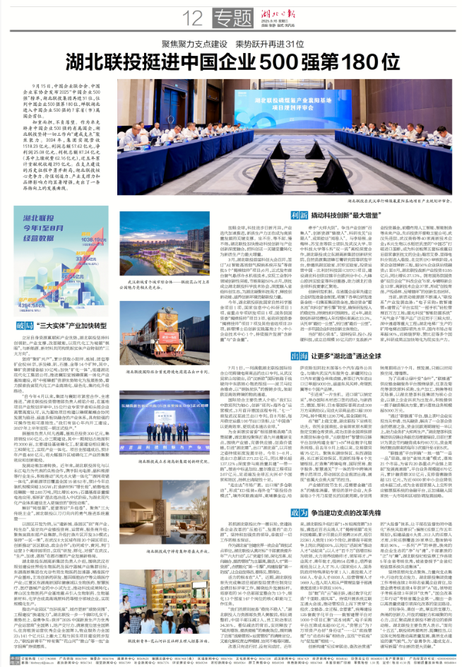 湖北日报深度报道:聚焦聚力支点建设 乘势跃升再进31位 湖北联投挺进中国企业500强第180位