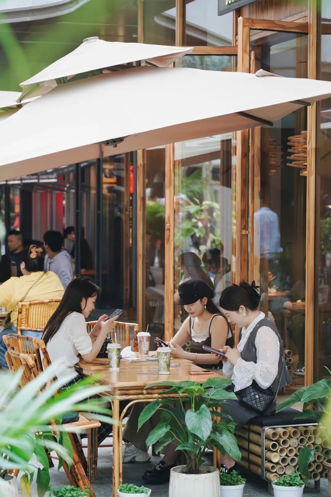 一棵近三层楼高的“大树”屹立于室内,坐在树下品一杯咖啡,抬头便透过22米高的玻璃幕墙,将窗外奔流的江景尽收眼底。10月2日傍晚,24岁的小陈和几位朋友相约在湖北联投武汉滨江天街的“沐光岛”中庭。漫洒的霞光、萦绕的绿意之间,他们享用了一顿氛围感十足的晚餐。
