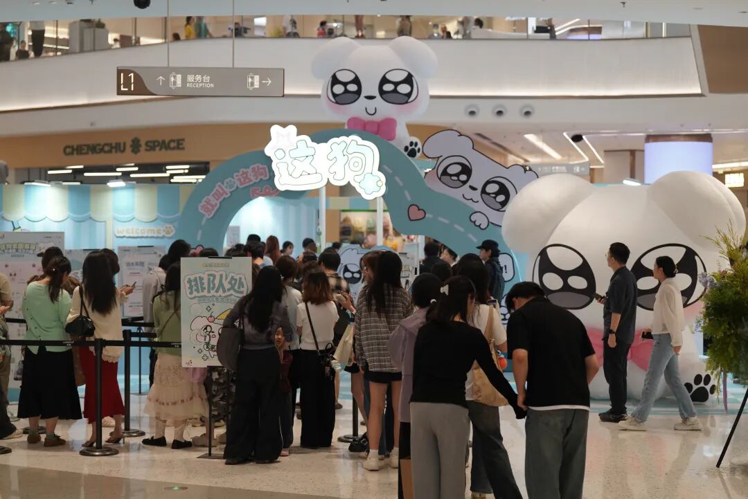 一楼中庭,“这狗”IP全国首展门前大排长龙,店内人流如织,各式文创产品吸引消费者驻足。不少年轻人簇拥在巨型“这狗”玩偶旁合影,伸手摸摸它的脑袋,瞬间被这份可爱治愈。与此同时,室外的迪卡侬运动能量场也变身为开放式运动会,射箭、高尔夫等数十种体验项目引得市民跃跃欲试。