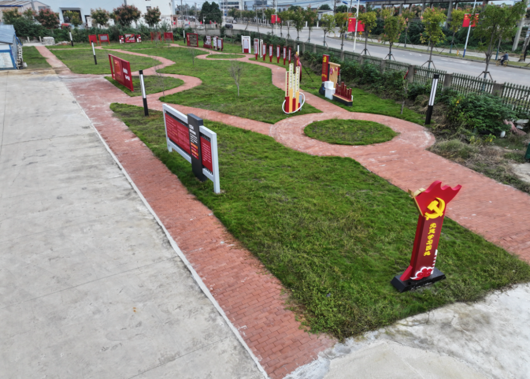 走进联投湖北路桥硚孝西1标项目部,右侧一片占地近3000平方米的党建学习园地引人注目。这里曾是闲置草地,如今已成为凝聚红色力量、浸润企业精神的文化阵地。