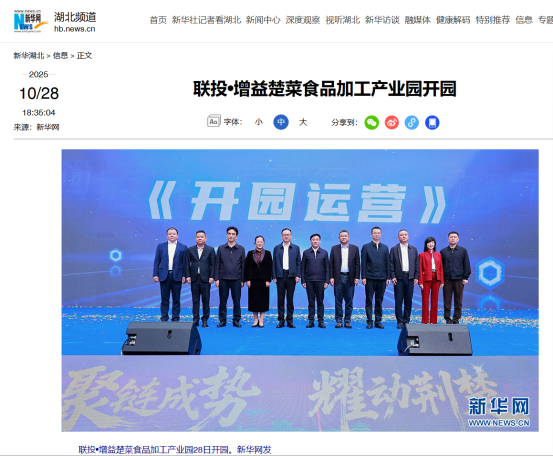 主流媒体聚焦报道:湖北联投·增益楚菜食品加工产业园开园