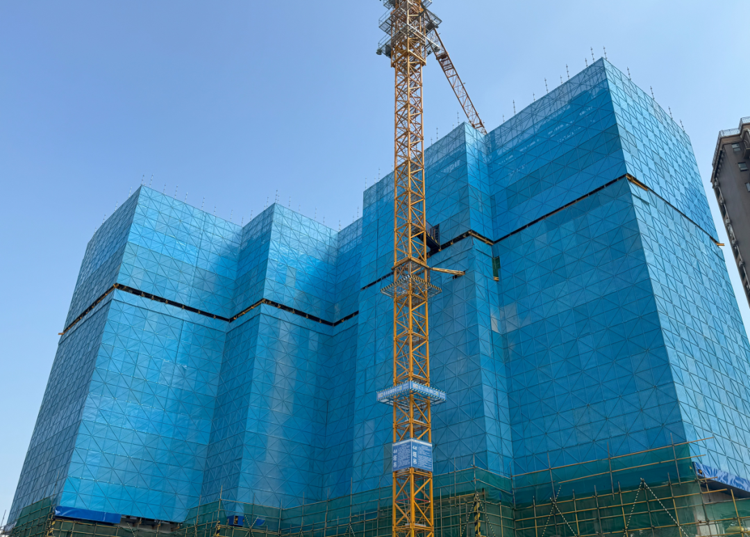 走进施工现场,极目新闻记者看到,在建的5栋高层建筑外立面上采用蓝色的花篮悬挑脚手架,既美观又安全。