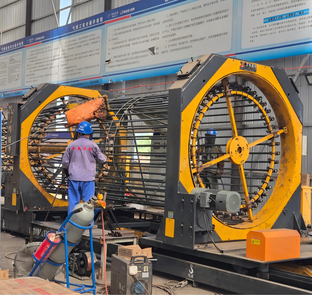 项目大力推行“智能制造”,钢筋加工由自动弯箍机、滚焊机、焊接机器人等智能工装精准完成,同时着力打造智慧拌合站与数智梁场。混凝土拌和在全流程监控下实现质量闭环,每一片预制梁从浇筑到养护的生产数据流均被物联网自动采集绑定,为每个构件赋予唯一的“数字基因”,使质量追溯贯穿全生命周期,实现从“工厂制造”向“数字智造”的深度转型。